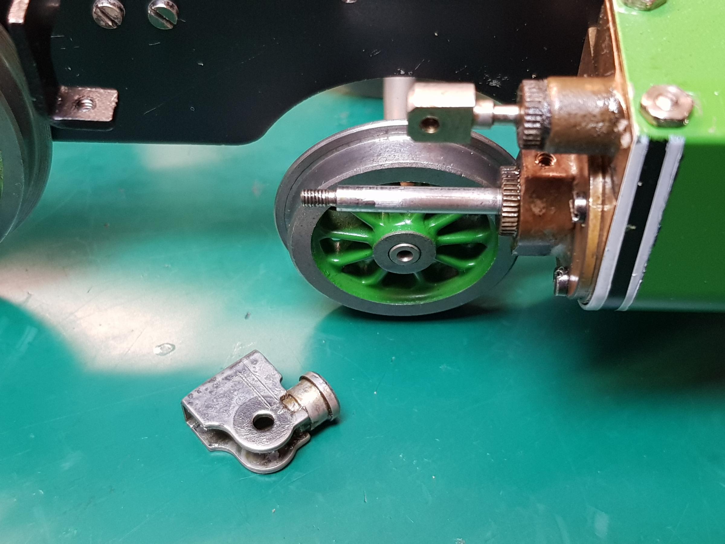 En nog zo'n klein klusje, de voetplaat in het machinistenhuis en de koppelstang.