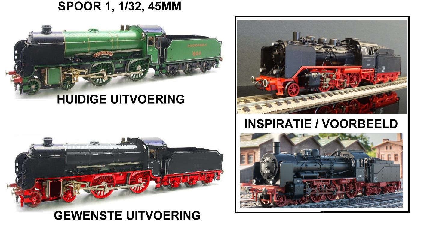Ik heb het idee opgevat om de Schools om te spuiten naar een DB gelijkende loc. Dat vind ik ook heel mooi, maar ik heb nu twee groene exemplaren.