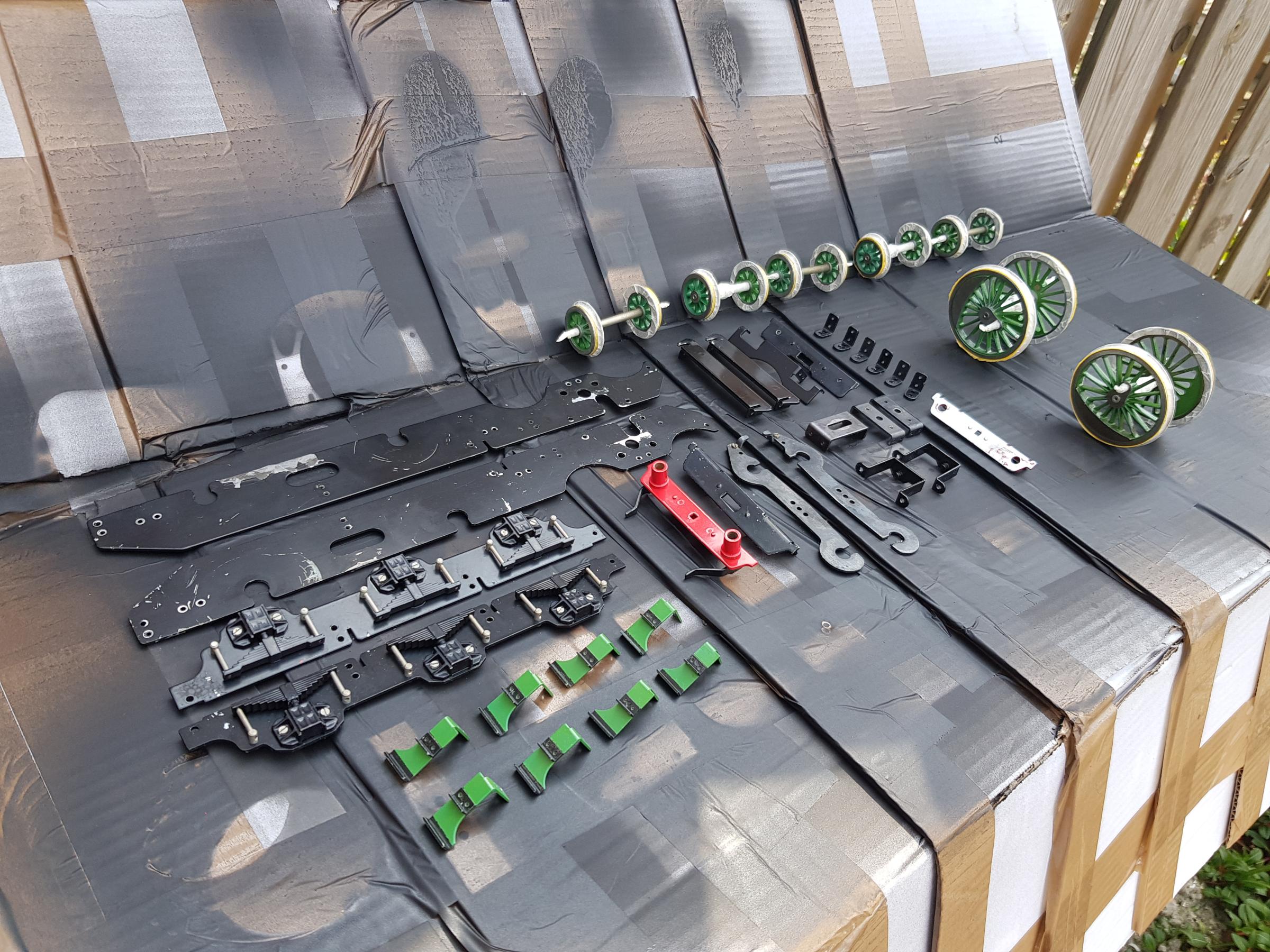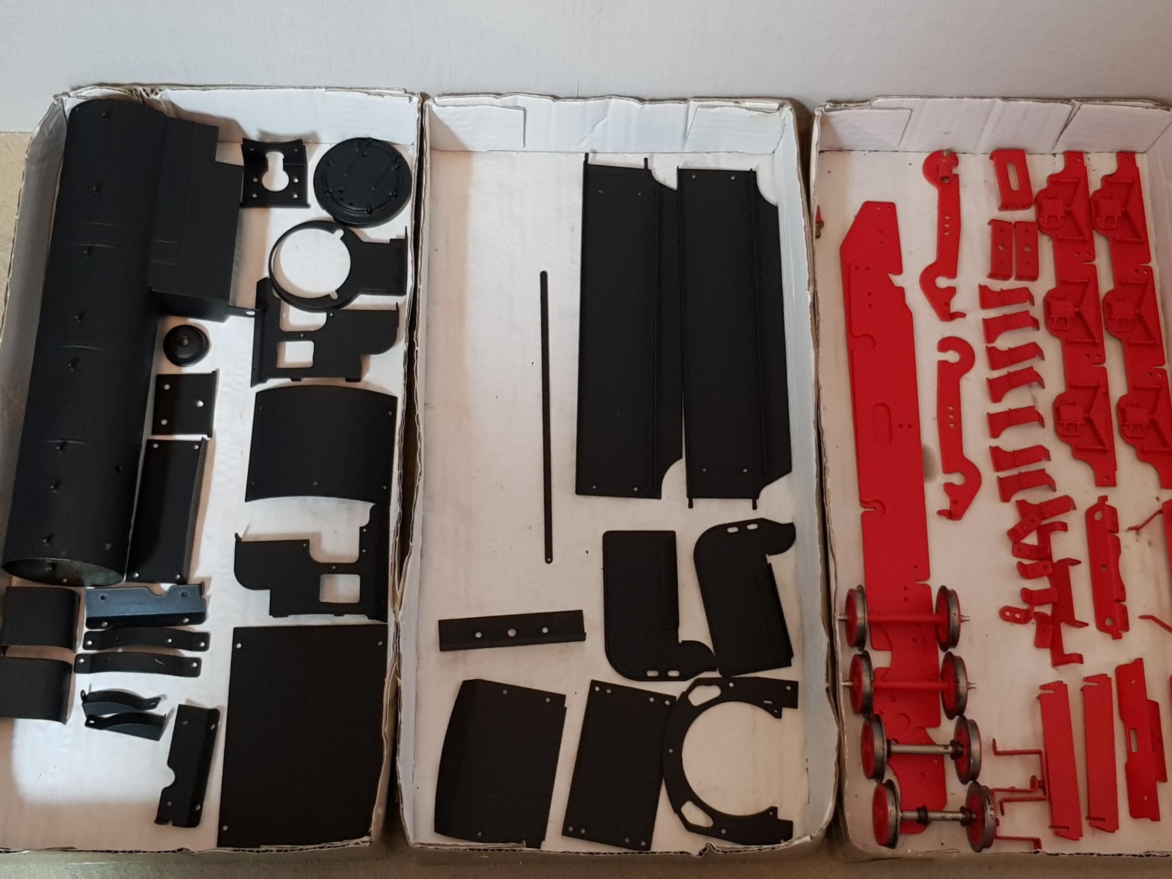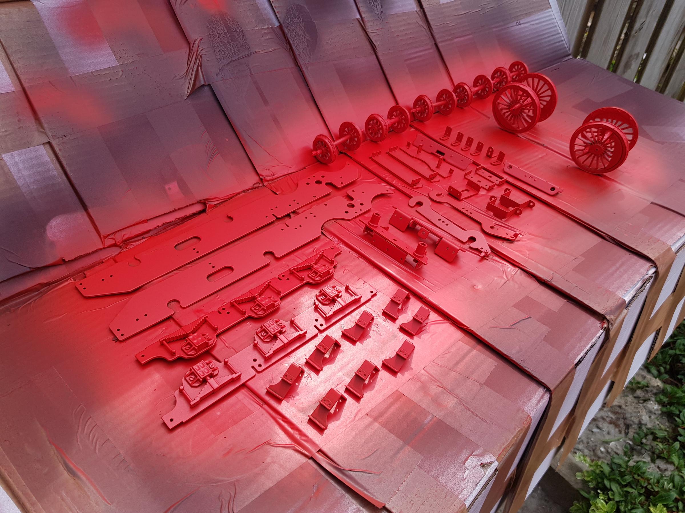 Inmiddels heb ik de loc gedemonteerd. Er zijn geen foto's van dit proces, maar dat is hetzelfde al de eerder geschreven herbouw van de loc. Een tray bevat onderdelen die rood moeten worden, de ander de onderdelen die zwart moeten worden.