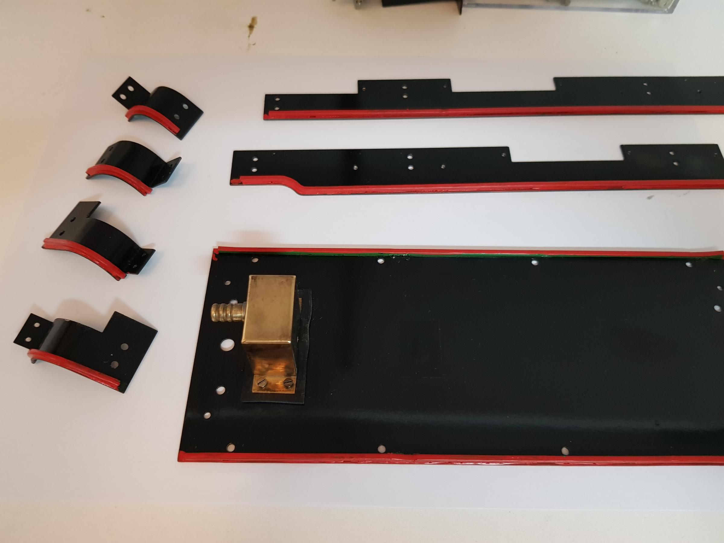 De onderdelen die niet blank geschuurd zijn hebben iets minder lagen gekregen, daar hoef ik slechts dezelfde finifsh te krijgen qua lak. Een zwarte basis hebben ze al.