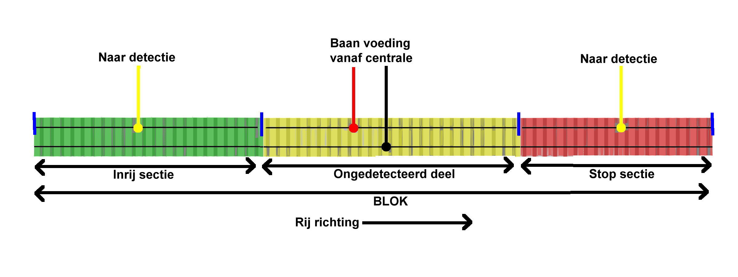 Als we uitgaan van een enkele rijrichting komt de trein eerst binnen op een Inrijsectie, de computer weet nu dat de trein is aangekomen in dat blok. Hij zal dan de trein afremmen in afwachting van een melding van de Stopsectie dat de trein aan het eind van het blok is aangekomen en (afhankelijk van de situatie) moet stoppen.