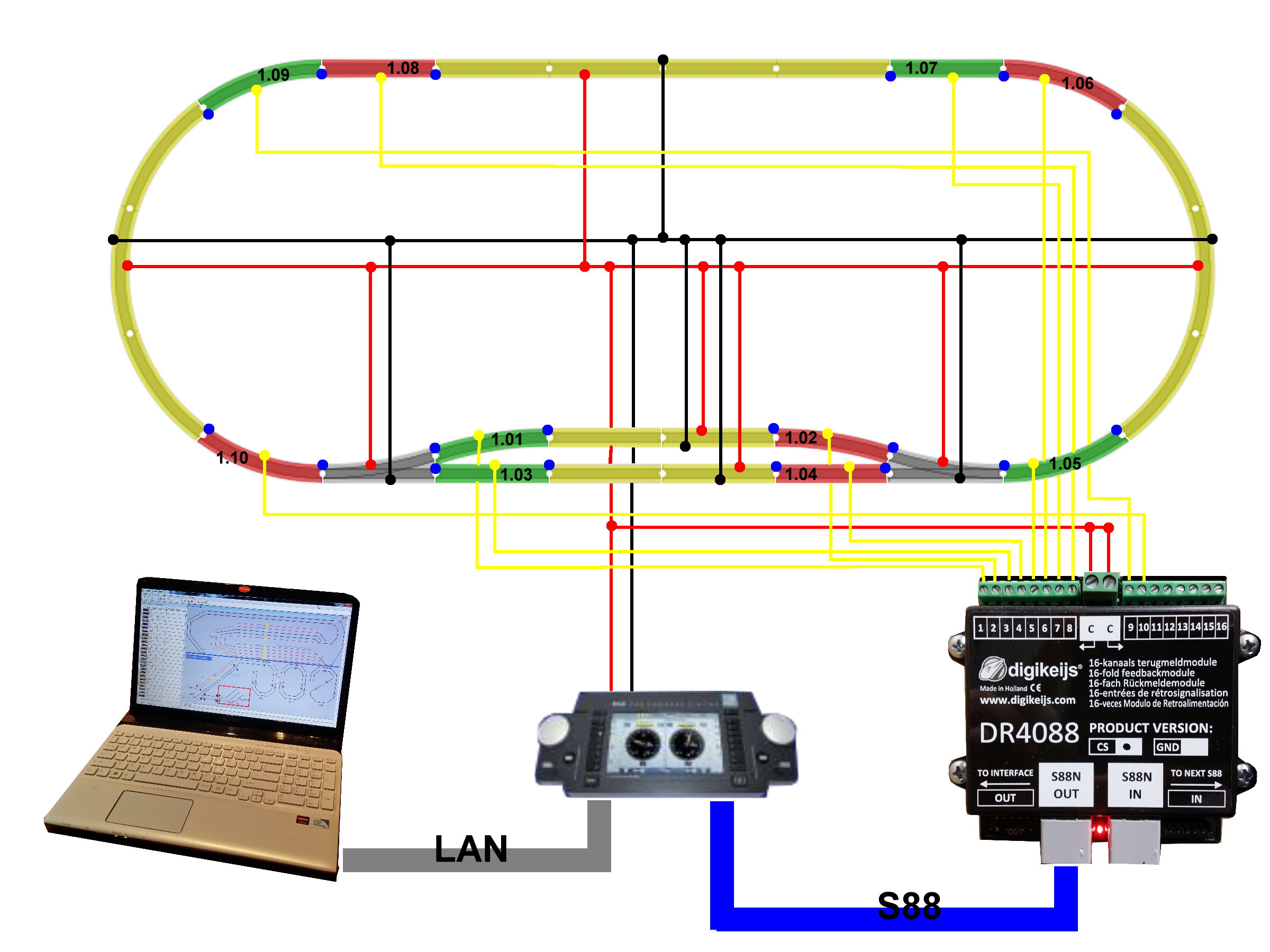 Nu je baan daadwerkelijk verdeeld is in blokken en secties kunnen we naar de aansluitingen. Aansluiten is op zich eenvoudig, maar je moet er wel het koppie bijhouden, het noteren van de aansluitingen is een aanrader.
